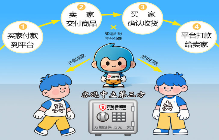 买卖双方已确定交易对象、交易内容与金额,但因先款后货还是先货后款的分歧而陷入僵局,通过万能担保网进行担保交易,求同存异快速解决分歧!交易成功卖家再提现,交易失败则原路退款,有效降低被骗风险,保障双方权益。放弃侥幸心理,谨记“无担保不交易,有担保才安全”!万能担保万无一失!
